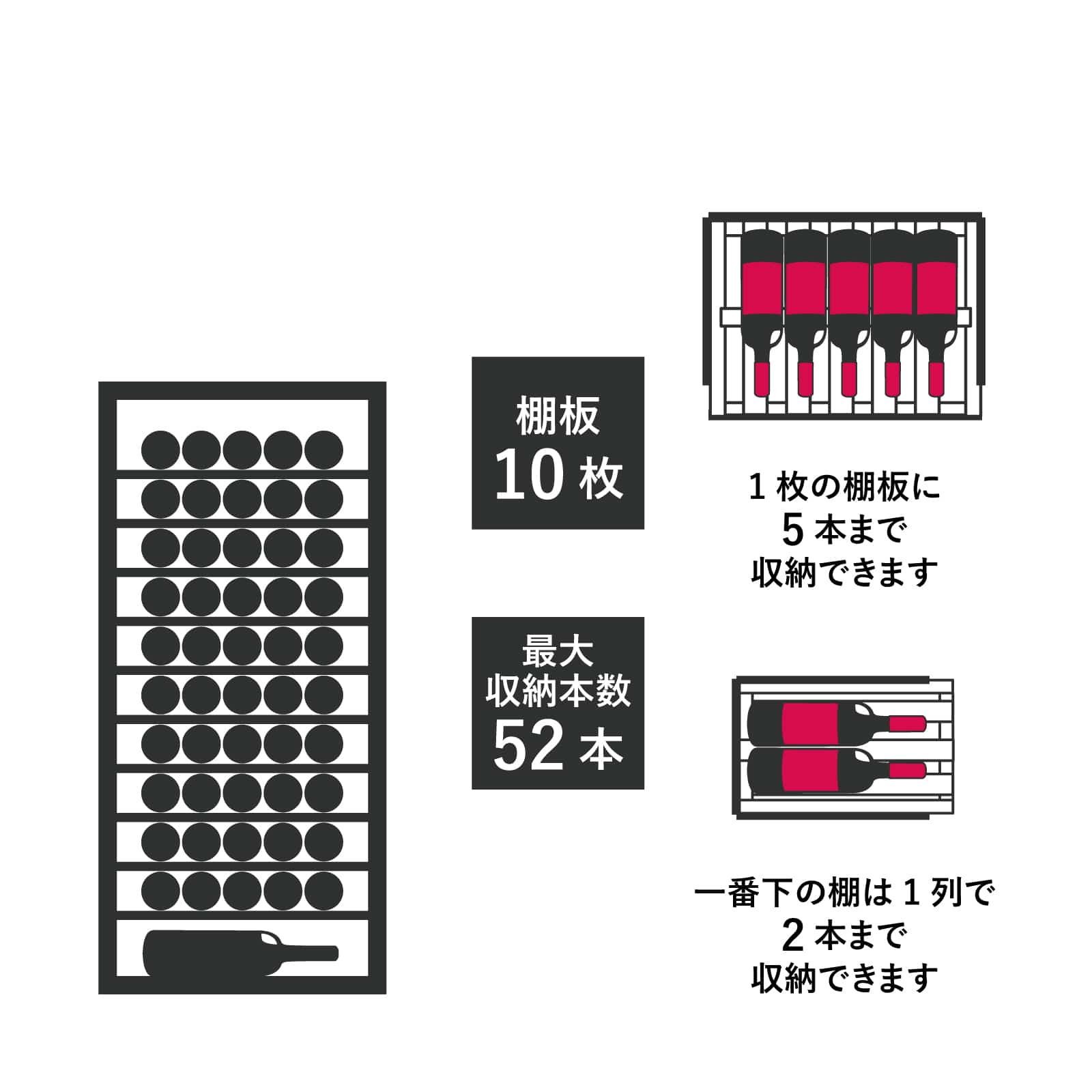 ※750ml入り、ボルドータイプの場合。ボトルサイズや形状により収納形態や、本数が変わります。
