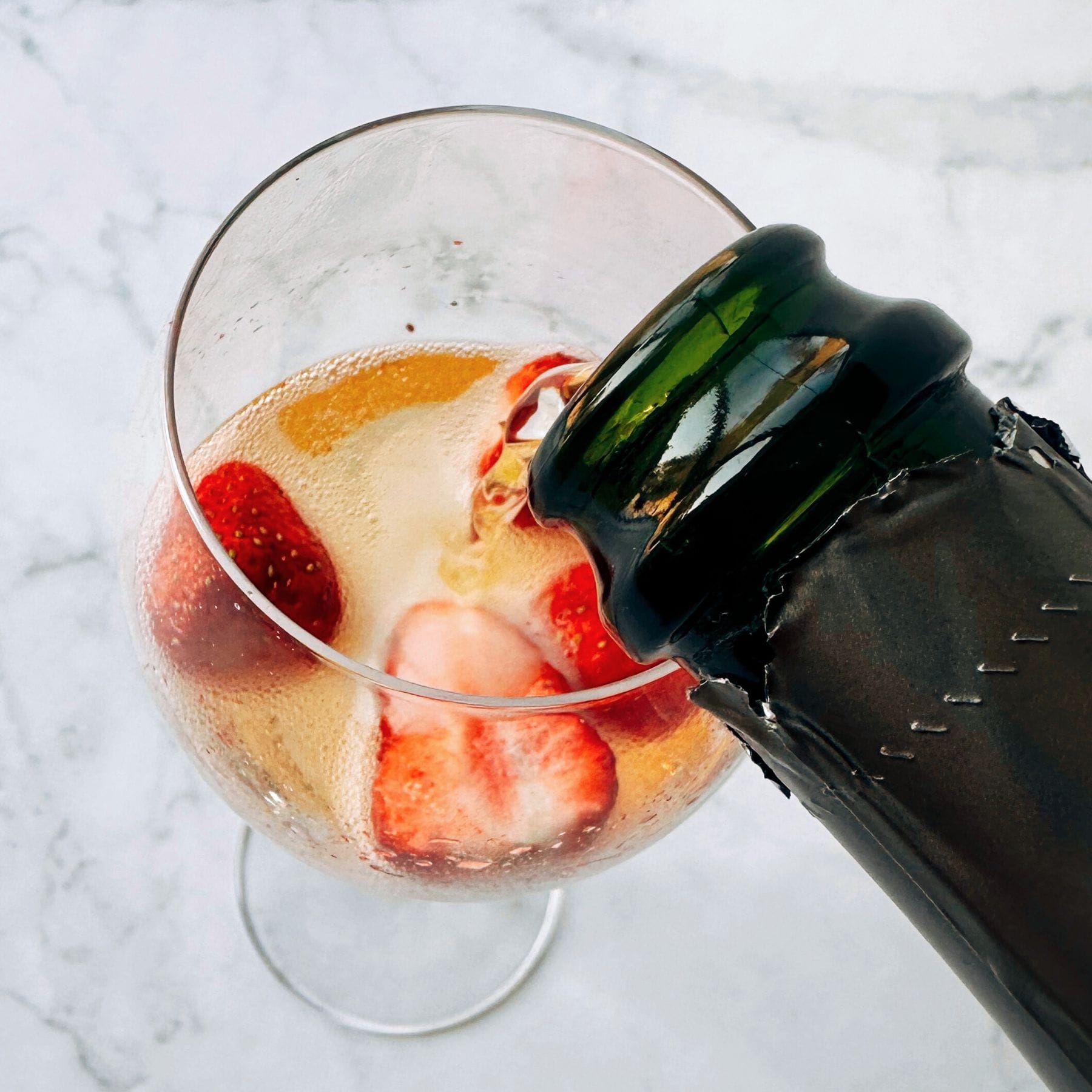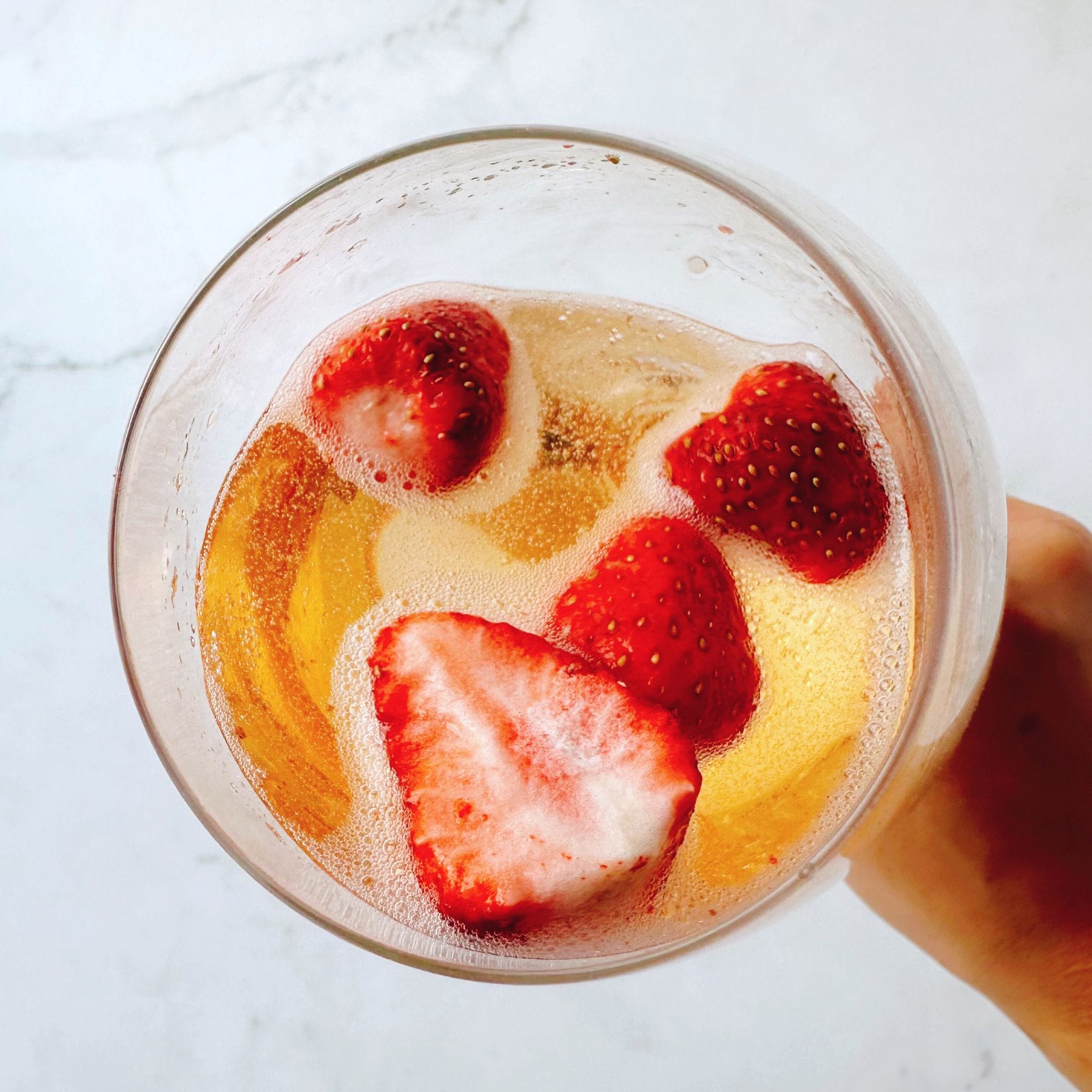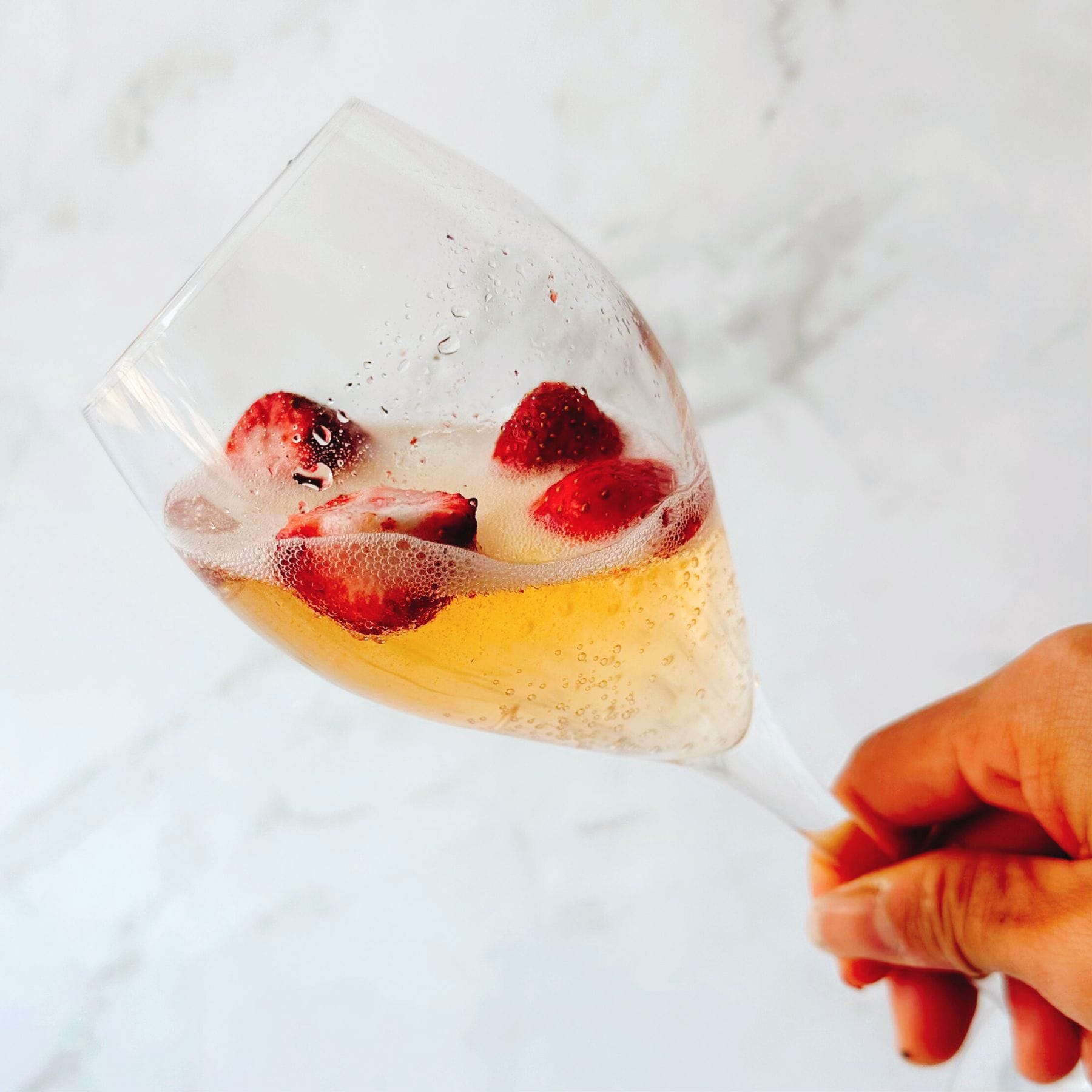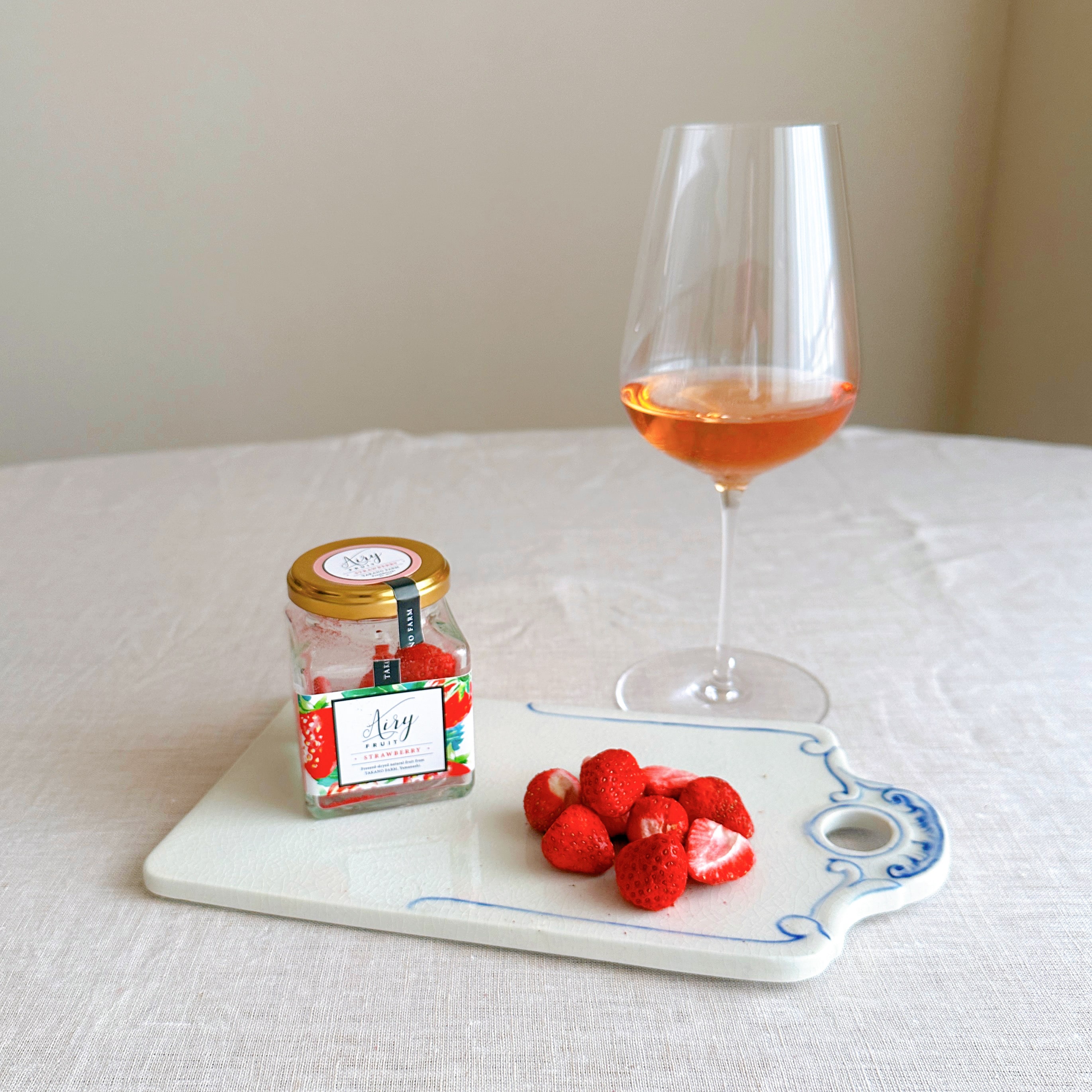エアリーフルーツは軽いのでワインの底に沈まず、かき混ぜなくてもすっと口の中に自然に入ってくるのでワインとのペアリングを上品に楽しめます。 ワインと一緒にすっと口に入るように、大きいいちごは割っていれるのがおすすめです。 お砂糖などを加えていないのでワインの味わいはそのままで甘ったるくならず、フルーティーさが引き立つお洒落なワインカクテルになります。
