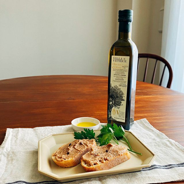 トスカーナでは、バターの代わりに香りのよいオリーブオイルを使います。サラダにかけてシンプルに味わうほか、スープにたらしたり、ステーキ、ブルスケッタ、パスタに「ひと回し」がおすすめです。