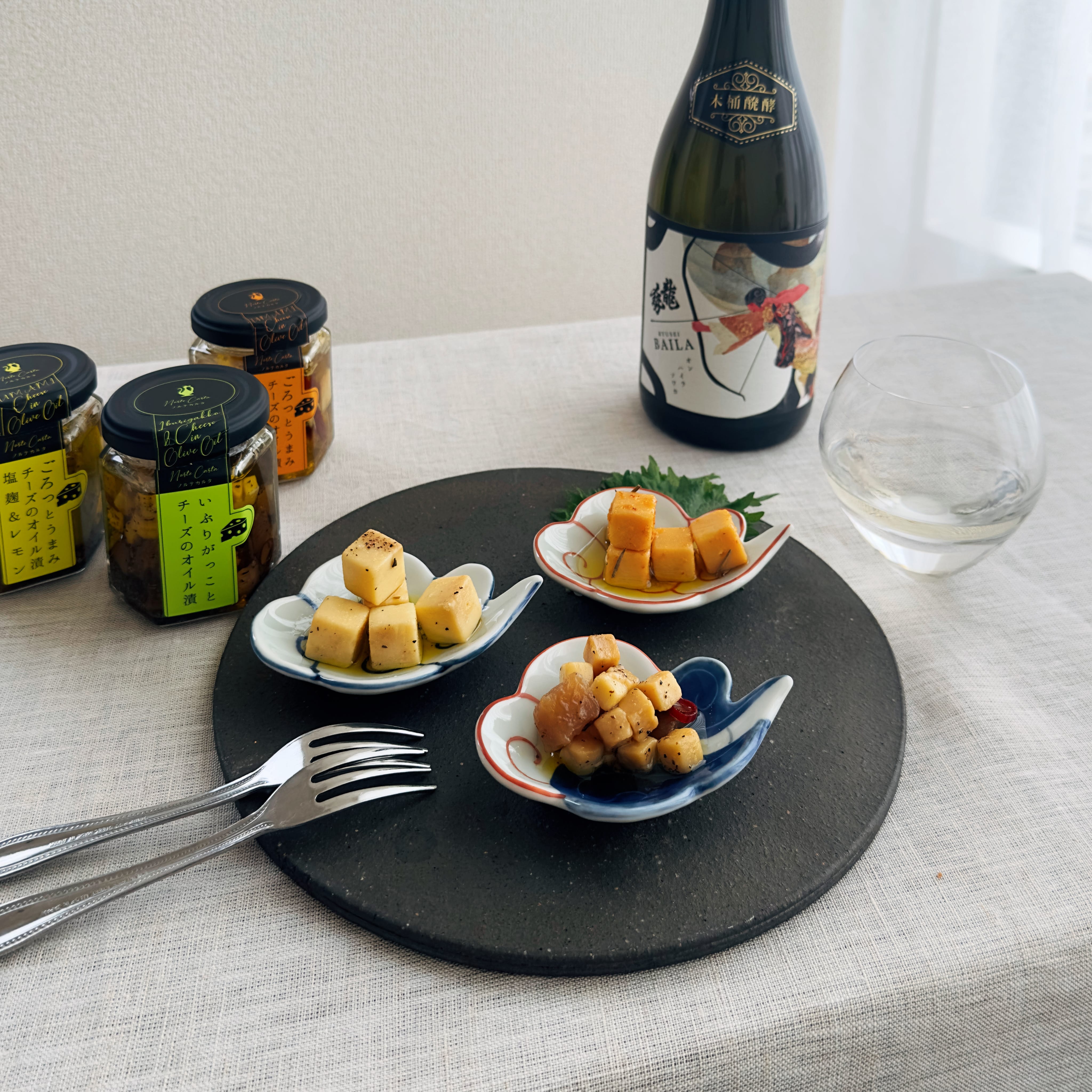 ワインはもちろん、日本酒のおつまみとしてもおすすめのチーズのオイル漬け。 特に、「いぶりがっことチーズのオイル漬」と日本酒の組み合わせは相性抜群です。