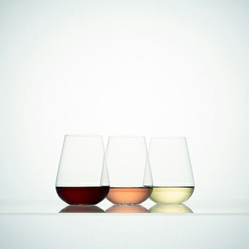 様々なスタイルのワインに適応しながら、ステムレスで省スペースも叶える万能型ワイングラス