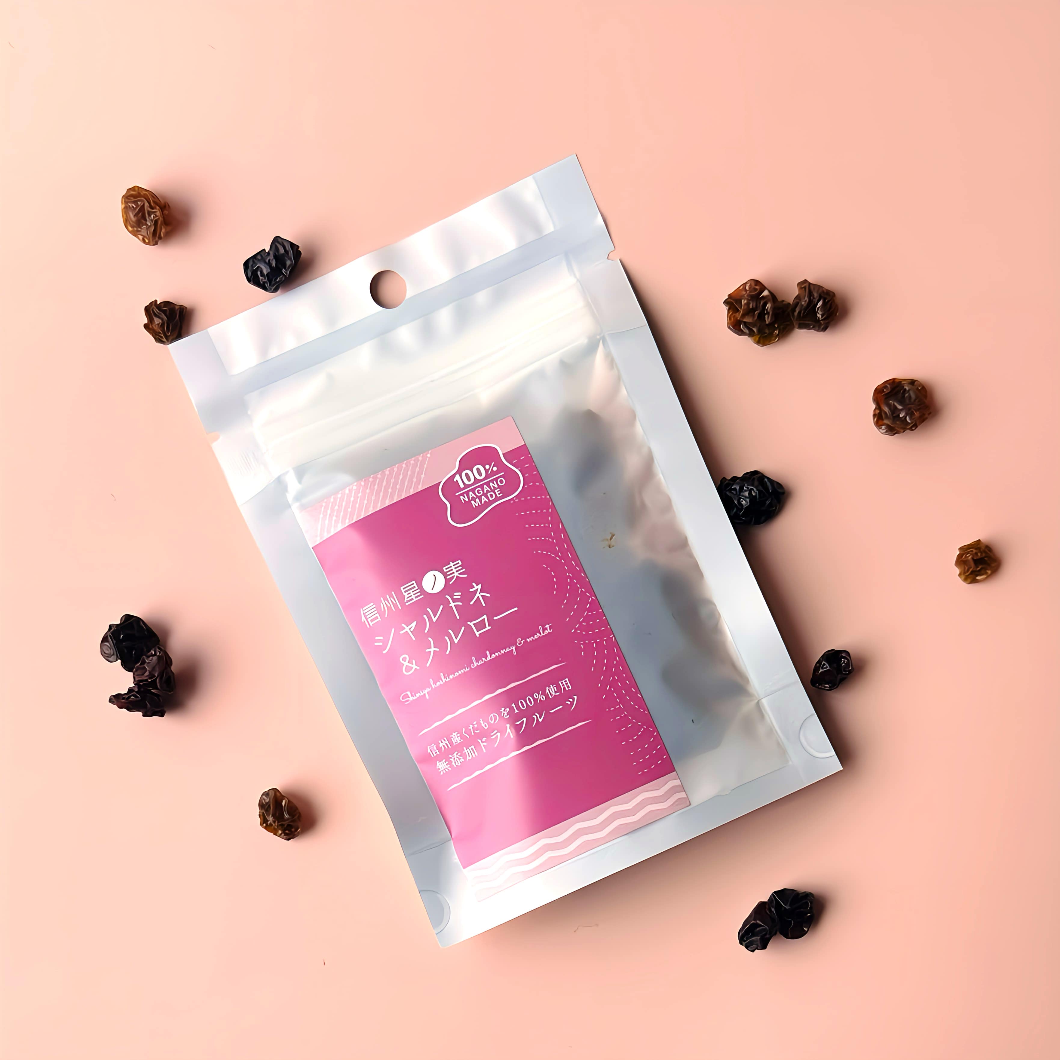 ワインにするべく大切に育てられた葡萄を使ってできた、珍しいワイン用品種の干しぶどう。 白ワイン用のシャルドネ種、赤ワイン用のメルロー種、それぞれワインぶどうならではの豊かな風味がぎゅっと凝縮しています。 余計なものを一切使わず全て手作りで丁寧に作られており、自然で優しい甘味と酸味が口いっぱい広がります。