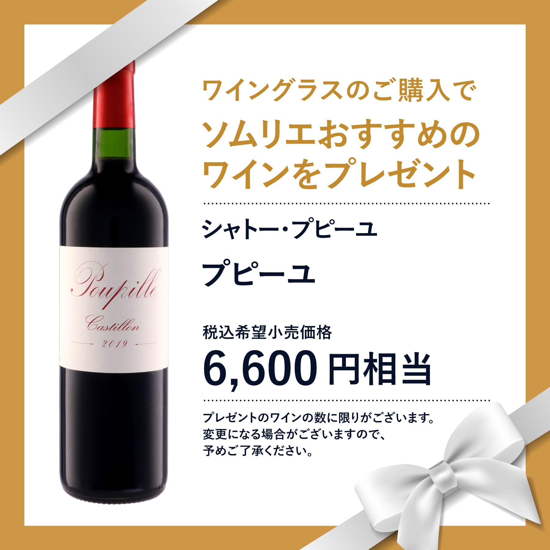 キャンペーン期間中にこちらの脚無しワイングラス(6脚入)をご購入で、赤ワインプレゼント! ボルドー右岸サン・テミリオンのすぐ東側に位置するコート・ド・カスティヨン。僅か10数年前までは高品質なワインが存在するなどとは誰も考えていなかった、このマイナーなアペラシオンから彗星のごとく現れ、そのような状況を変えたのが、「シャトー・プピーユ」のオーナー、フィリップ・カリーユ氏です。彼の造り出す「濃く、絹のように滑らかなワイン」は品評会でも話題となり、専門家によるブラインドコンテストで、最後まであの「シャトー・ペトリュス」と張り合ったこともある実力派の1本です。