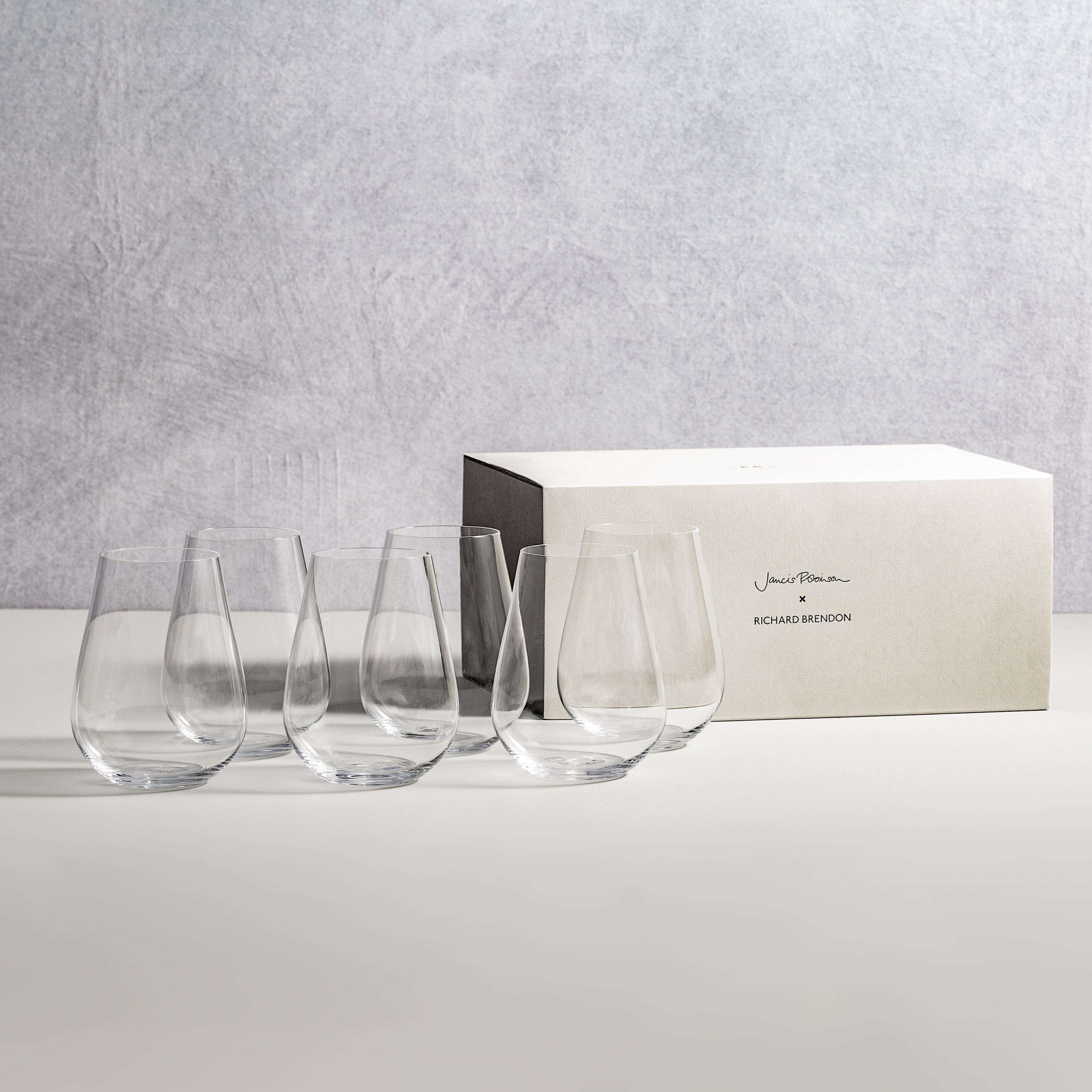 一人暮らしであれば1脚、お二人なら2脚あればそれだけで充分。 ジャンシス・ロビンソン グラスコレクションにはステムありのグラスもありますが、ステムレスグラスを選べば、より気軽に、テーブルも収納も、ミニマルなスペースでお楽しみいただくことができます。 ※「ステム(脚)あり」、「ステムレス」、どちらも、ボウル部分のフォルムとサイズは同じです。