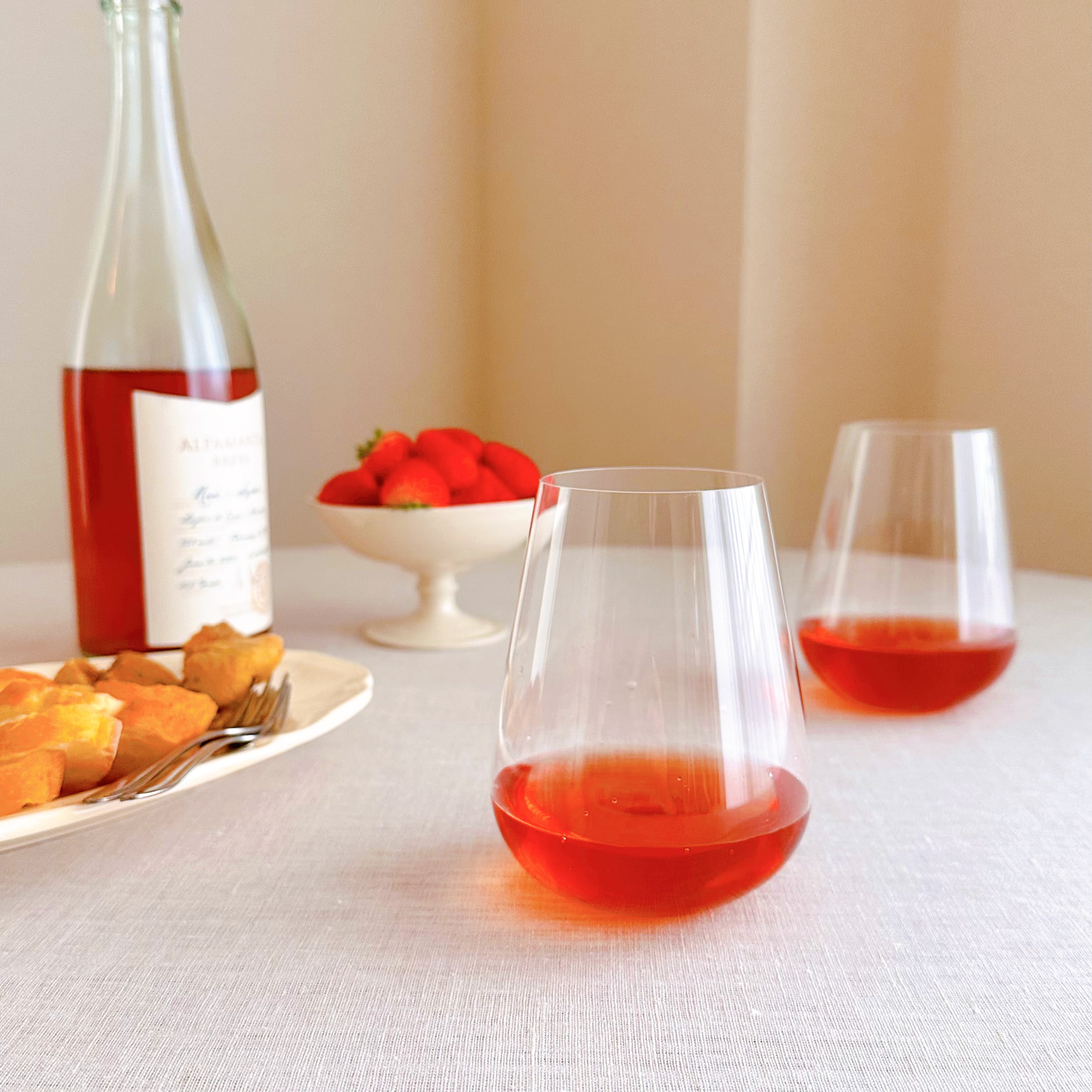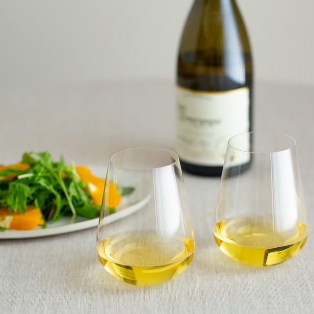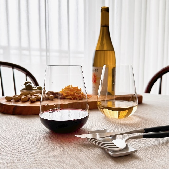 ステムがないことで、通常のワイングラスよりもテーブルの上がカジュアルな雰囲気に。かしこまらず、リラックスした雰囲気でワインを楽しむことができます。