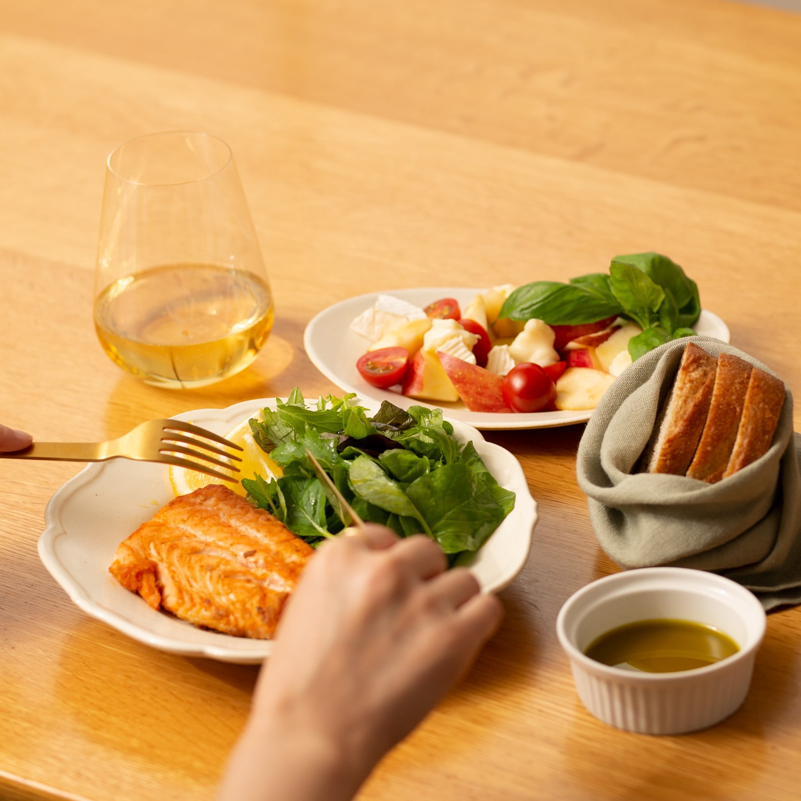 たくさんのお料理やグラスが並ぶシーンでも、スッキリとしたテーブルセッティングにすることができます。