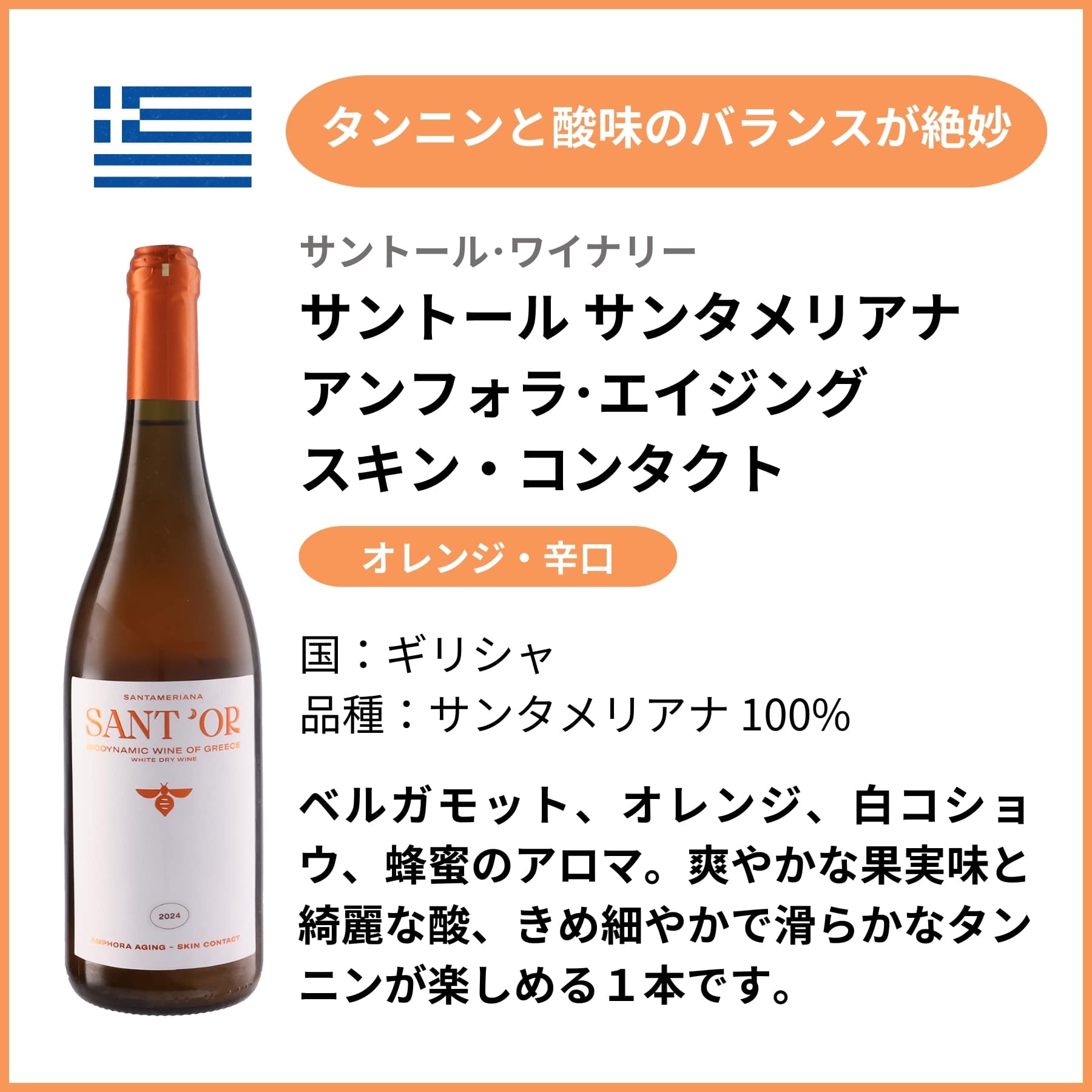 オレンジワインは、白ブドウを使って、果皮、果肉、種、一部の茎を一緒に発酵させる、赤ワインの醸造方法で造られます。果皮や種を一緒に漬け込こむことでワインの色がオレンジがかった色になるため、オレンジワインと呼ばれます。こちらのセットでは、比較的タンニン分が少なくオレンジワインの入口としておすすめな3商品をセレクトしました。