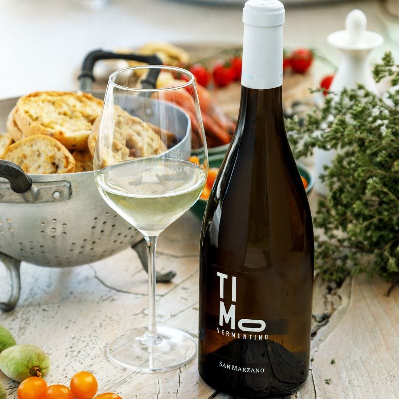 「ティモ」とは、イタリア語でタイム(ハーブの一種)を意味します。海の近くでプーリア州の太陽をたっぷりと浴びながら育ったブドウは、ワインにフレッシュでアロマティックなニュアンスをもたらしてくれます。柑橘の果実味、いきいきとしたミネラル感、まさにタイムのような清涼感のあるアロマが見事に調和した味わいは、飲む人を南イタリアの海へいざなってくれるようです。