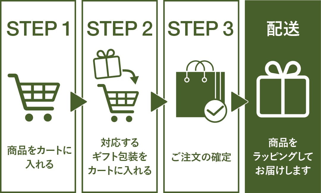 商品ごとに対応するギフトラッピングが決まっております。以下の手順でご購入下さい。