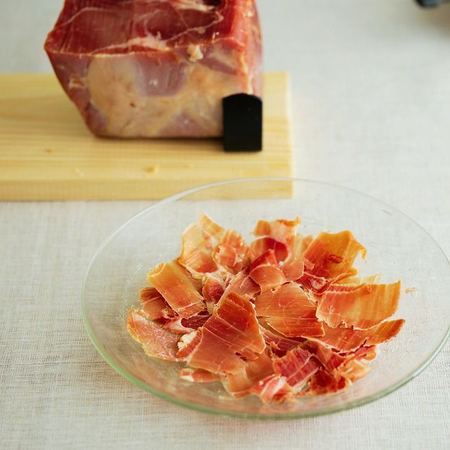②生ハムの厚みが1~1.5mm程度になるように調節してください。