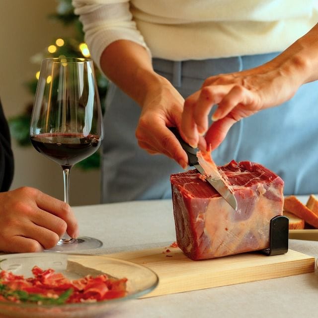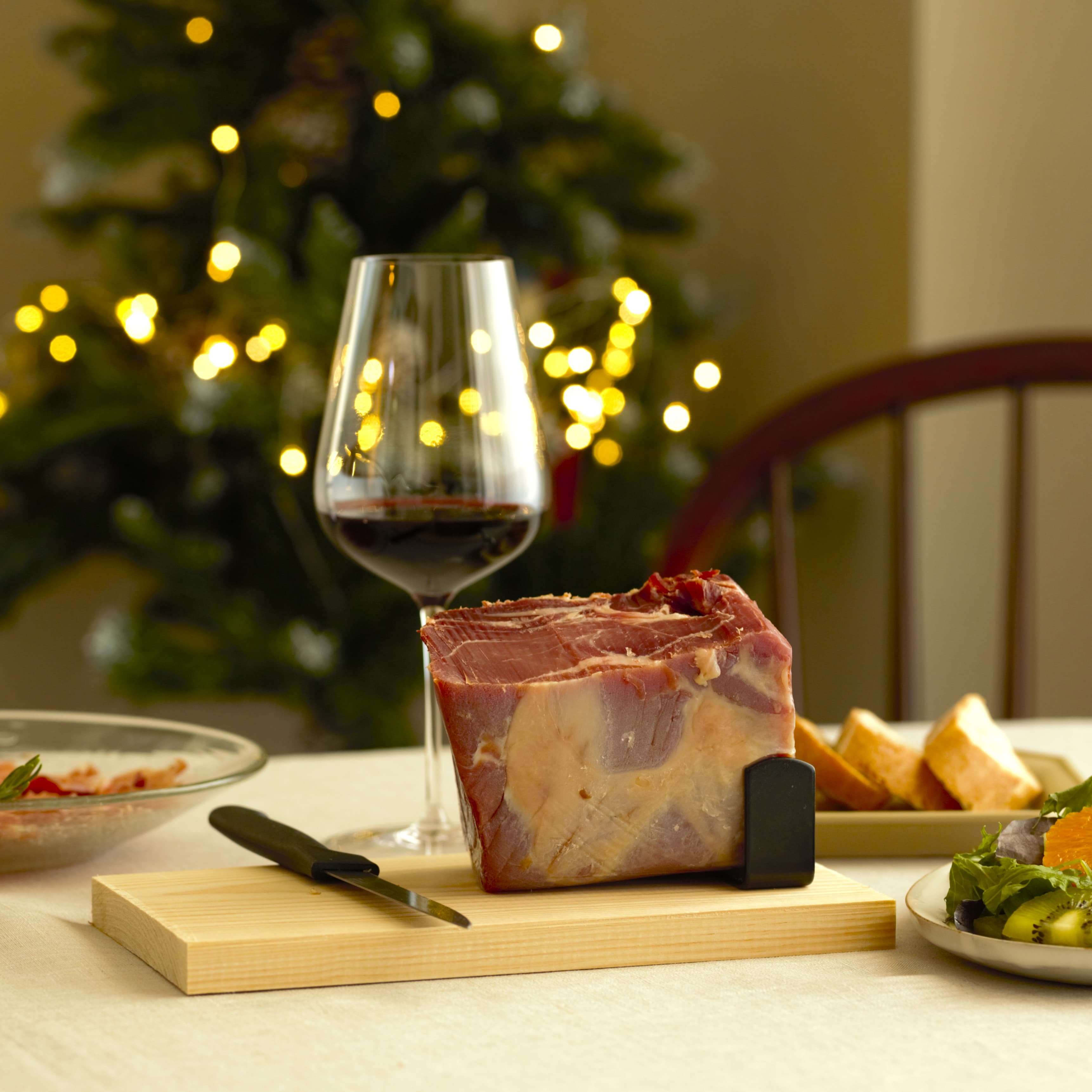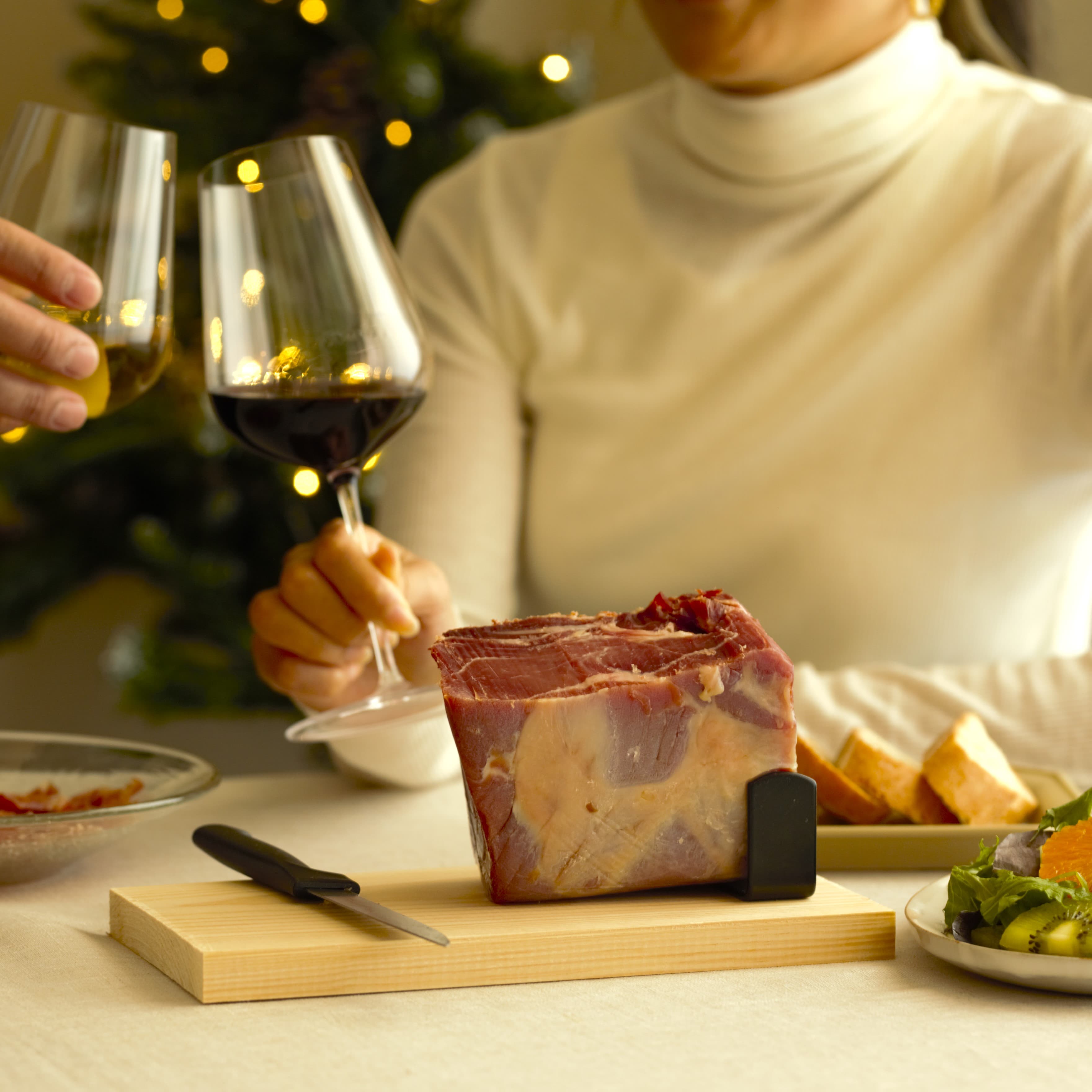 ご自宅で気軽にレストランで味わうような切りたてでフレッシュな生ハムが楽しめるキット。1つのキットでたっぷり約30皿分あります。 長い熟成から生まれる芳醇な香りと旨味、そして甘さすら感じる脂をワインと一緒にお楽しみください。