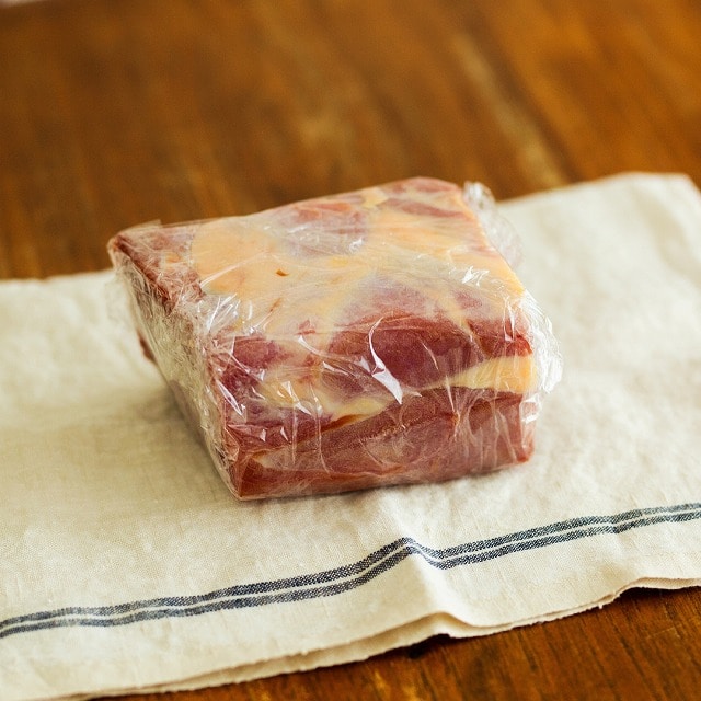 本来の生ハム原木は豚の後ろ脚丸々1本ですので、家庭用としてはちょっと多すぎて管理もなかなか大変です。ですが、この「ミニ原木キット」なら毎日1人前食べても1か月の間で食べきれる量ですので、気軽にご家庭で原木生ハムのある生活をスタートすることが出来ます。