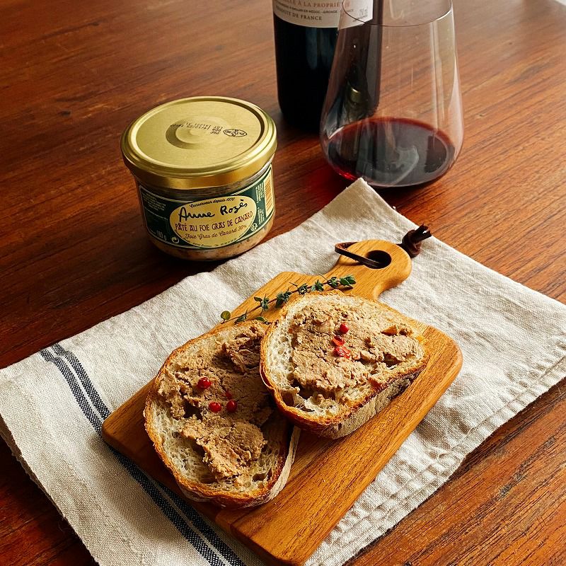 豚肉の旨味に、フォワグラのクリーミーな風味と甘みが感じられるリッチな味わいので、常温、または少し温めて食べるのがおすすめです。シャンパーニュや辛口スパークリングはもちろん、コクのある白ワインや赤ワインとも合います。