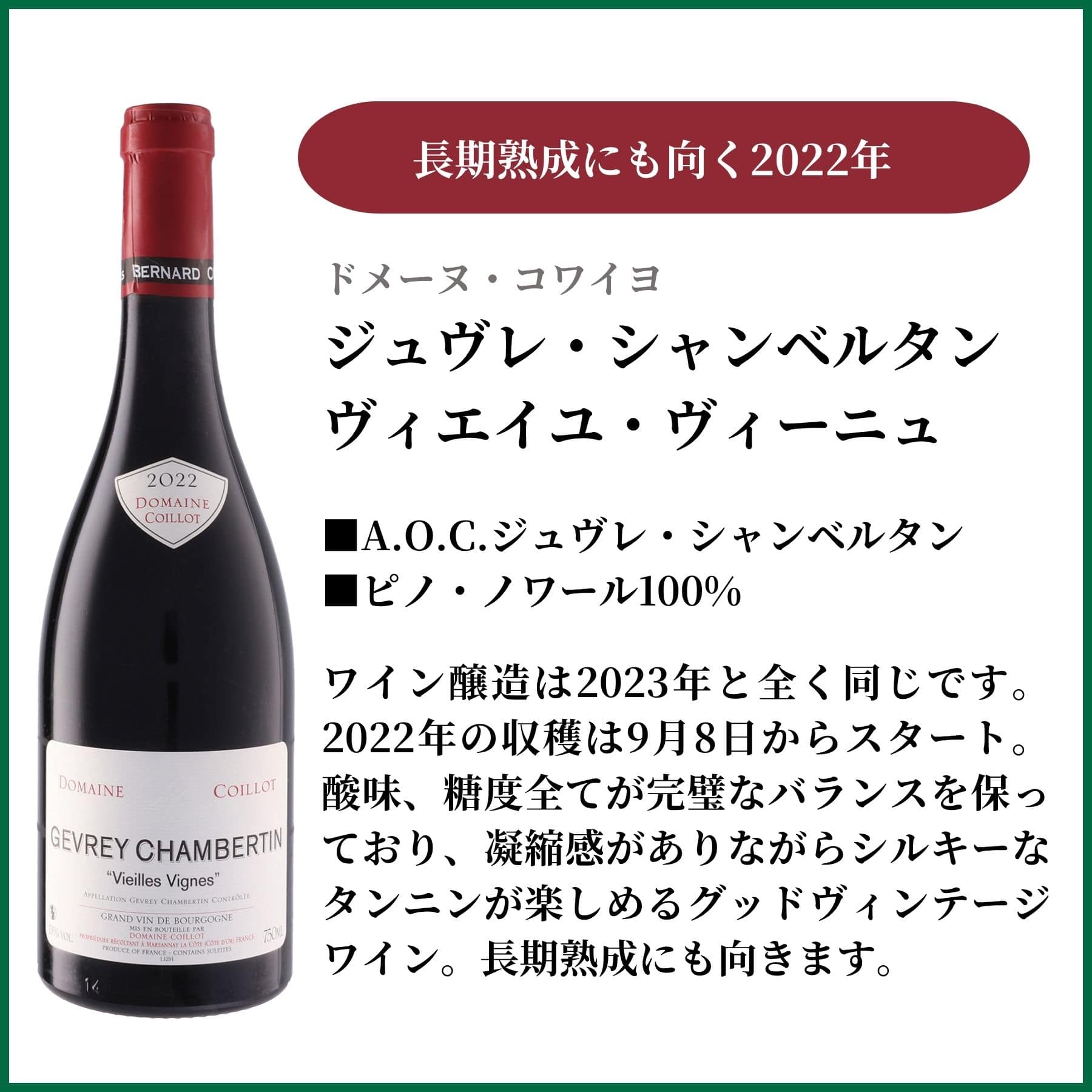 ピノ・ノワールの聖地、ブルゴーニュ地方コート・ド・ニュイ。 その中でも特に有名なジュヴレ・シャンベルタン村をもっと深く堪能してみませんか。 こちらは同一生産者・同一ワイン、異なる2つのヴィンテージの飲み比べができる2本セット。 ヴィンテージごとによってガラリと変化するワインの個性を堪能できる贅沢な2本セットです。