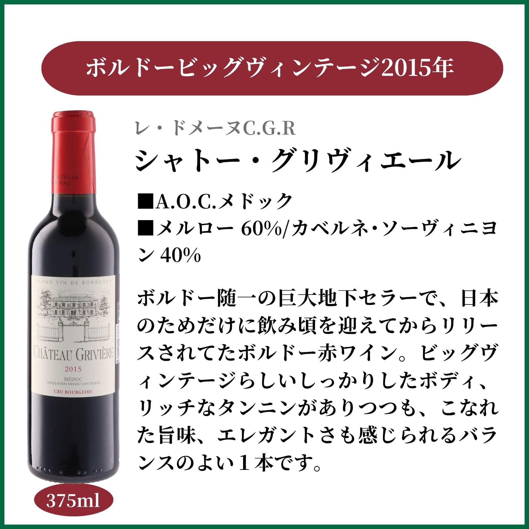 ちょっとだけ、美味しいものが欲しい。 そんな願いを叶えてくれるのが、こちらのフランスワイン銘醸地ハーフサイズワイン3本セットです。 赤は、ボルドー当たり年2015年の飲み頃ワイン。 白は、ミネラル感とキレの良さが魅力のシャブリ。 泡は、ヴィクトリア女王にも愛されたシャンパーニュ。 「今日は1人で少しだけ楽しみたい」「複数の種類を少しずつ試したい」、そんな方にぴったりのセットです。 いろいろなシチュエーションで楽しめるこちらのセット、送料無料でお届けします。