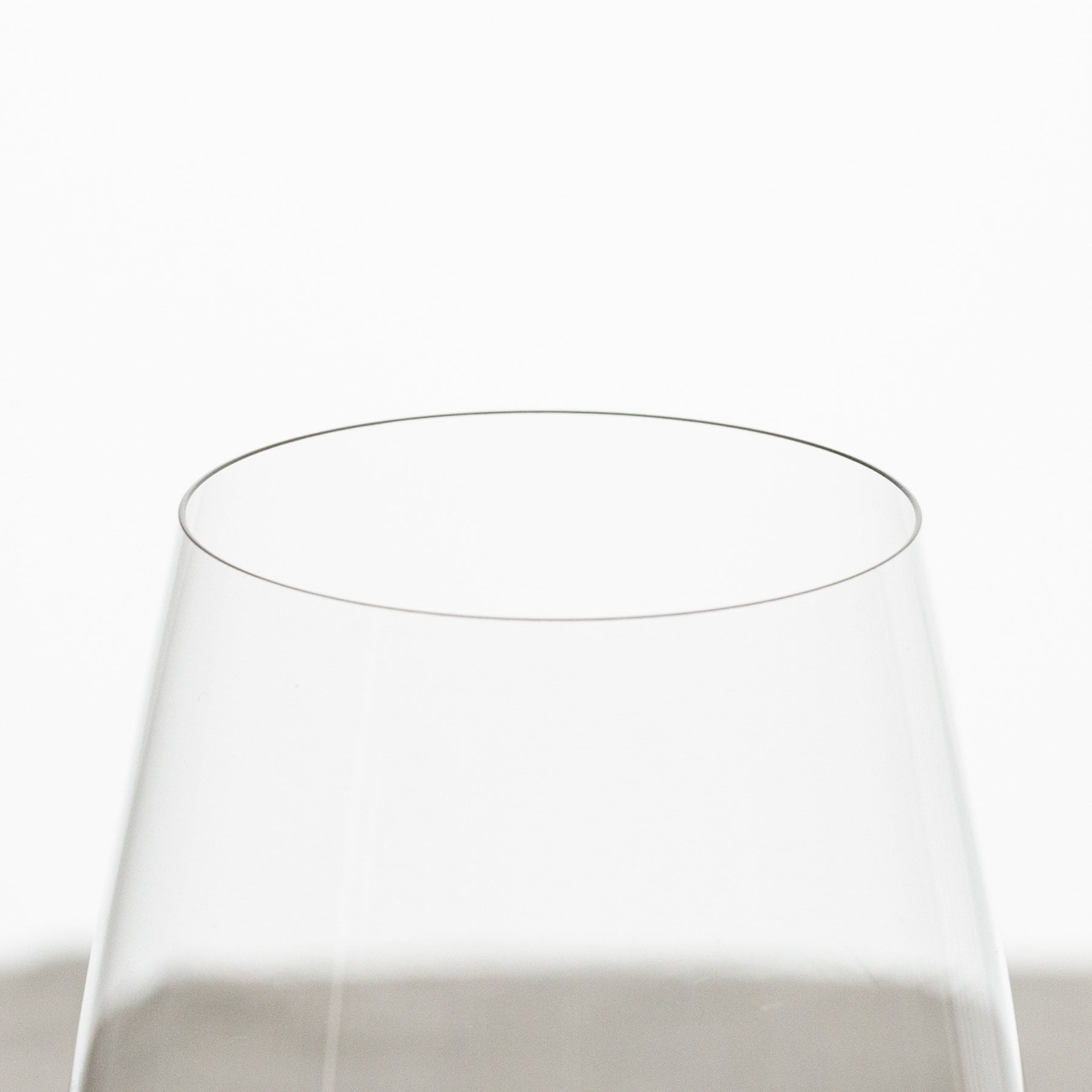 ガラスを極限にまで薄くして、唇が触れる面積を最小限にすることで、口の中へ滑らかなワインの流れを自然に作ってくれます。 それにより、ワイン本来の繊細な味わいを逃すことなく楽しめます。 グラストップにかけての広がりが程よく、顎を大きく上げずに飲むことができます。ワインを飲む所作を美しく見せてくれるデザインです。