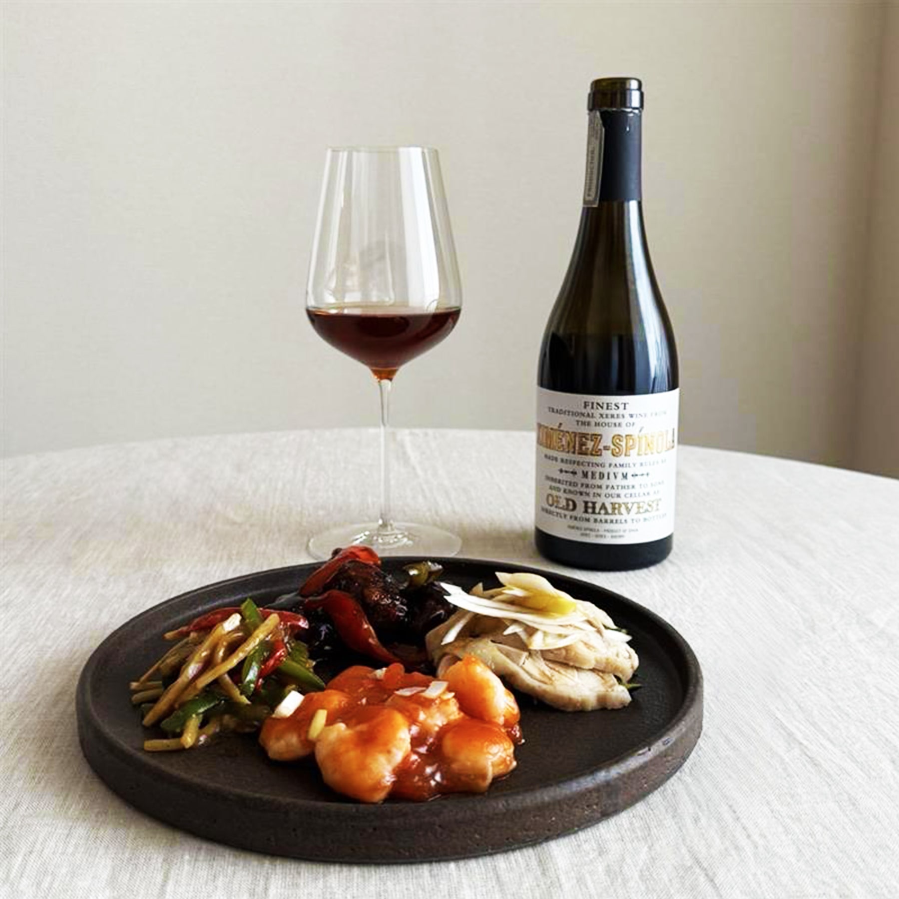 甘酸っぱさがあるタレと、このワインのほんのり甘味さえも感じる凝縮した果実味がとてもよく合います。酢豚に入っている一口サイズの豚肉と、ミディアムボディのワインのスケール感もバランスが良いです。また、ワインに酸味があるのでお料理の味わいをきゅっと引き締めてくれ、最後まで食べ飽きさせません。