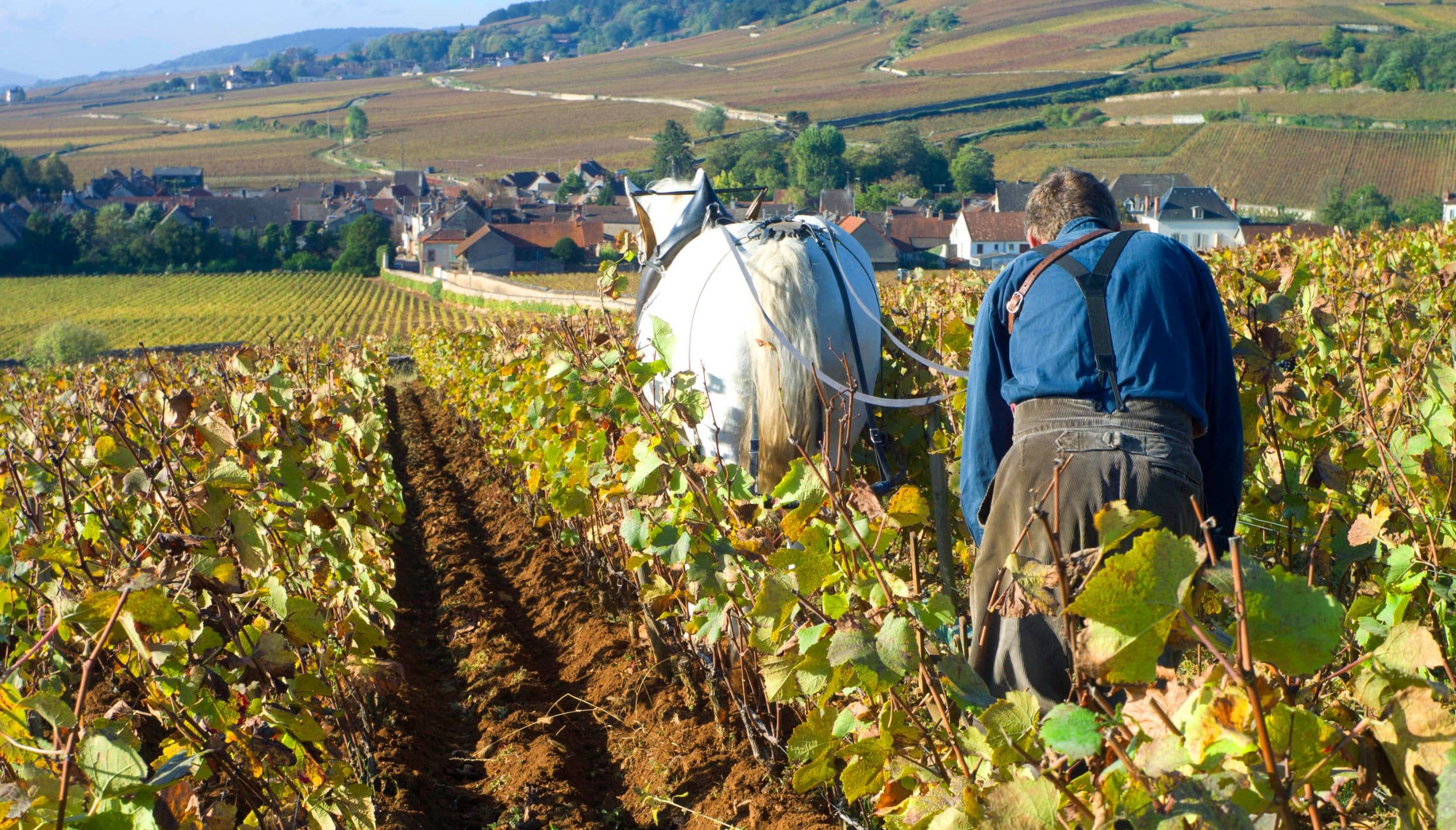 また、ワイナリーでは人工酵母は使用せず除草剤の使用も行わないため、手入れには非常な手間がかかります。 土壌の手入れについては、すべて手作業で行い、パーセルごとに馬を使っての耕作を行い、土に空気を含ませるように柔らかく深く耕作を行っています。