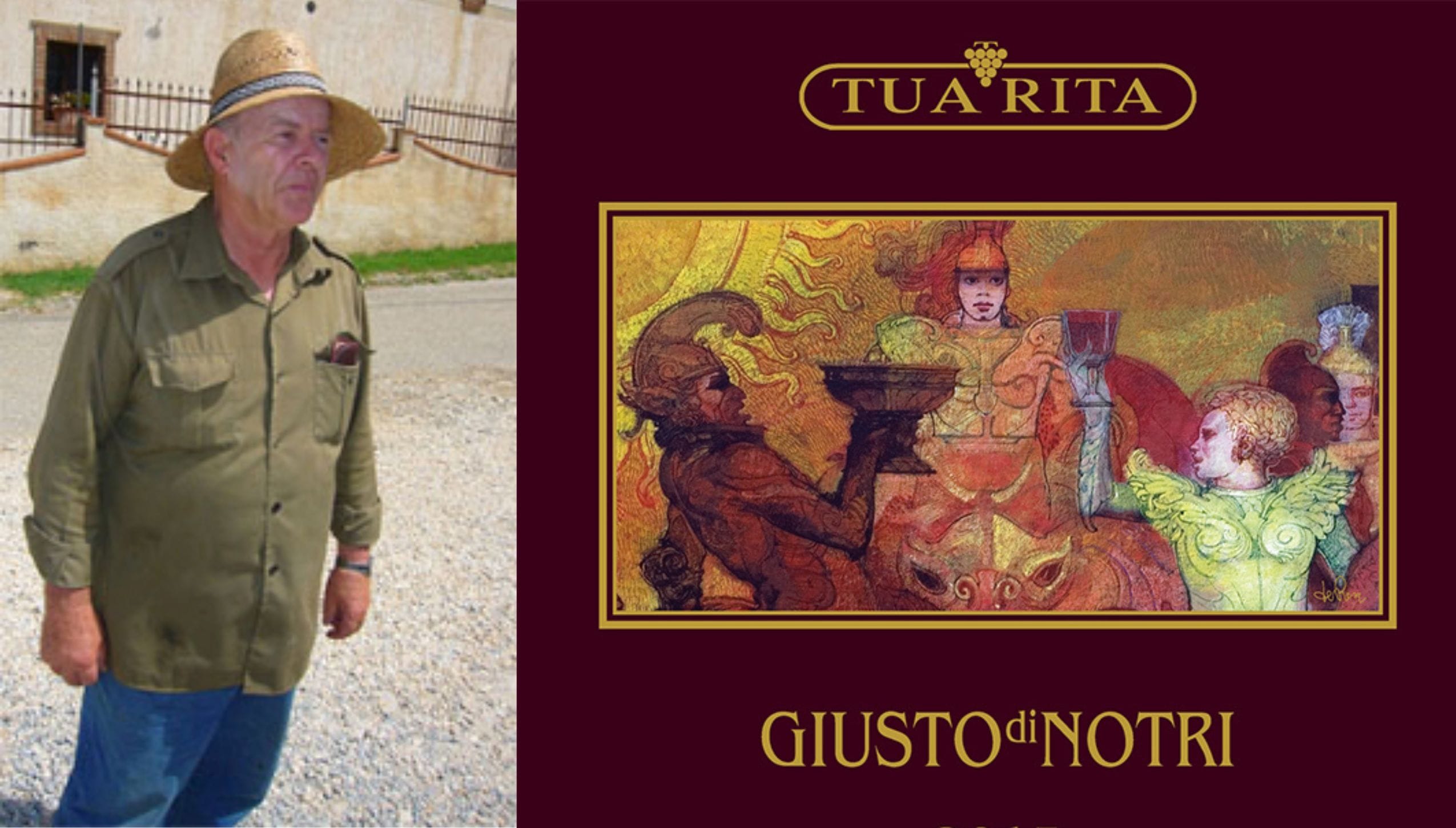 ラベルを描いたのは画家のラファエッレ・デ・ローザ氏。ギリシャ神話に出てくるDionysos(ディオニソス)が描かれています。ディオニソスはワイン、泥酔、快楽、喜びの神として知られ、後にローマ神話ではバッカスと呼ばれます。神に愛されたワインに相応しいラベルがトゥア・リータに描かれています。