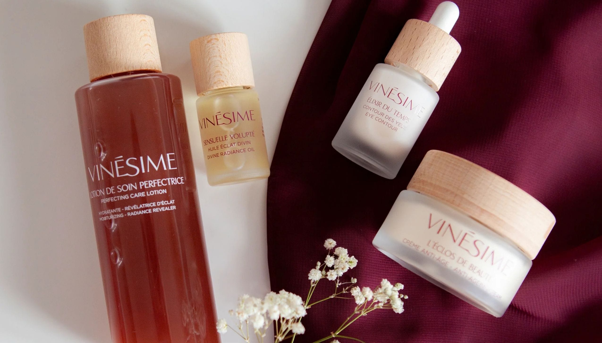ヴィネジムは、このワインの哲学をスキンケアに重ね、日々のケアによって肌本来の美しさを育て、時間とともに美しさを深めていくスキンケアを提案しています。